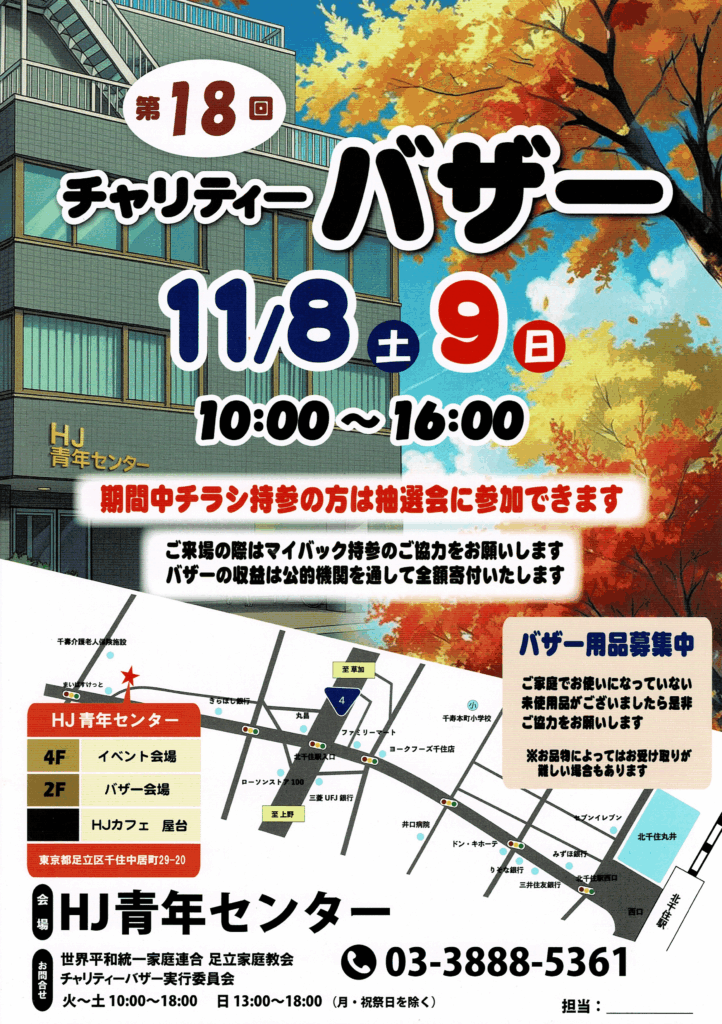 11月8日㈯9日㈮第18回チャリティーバザー開催